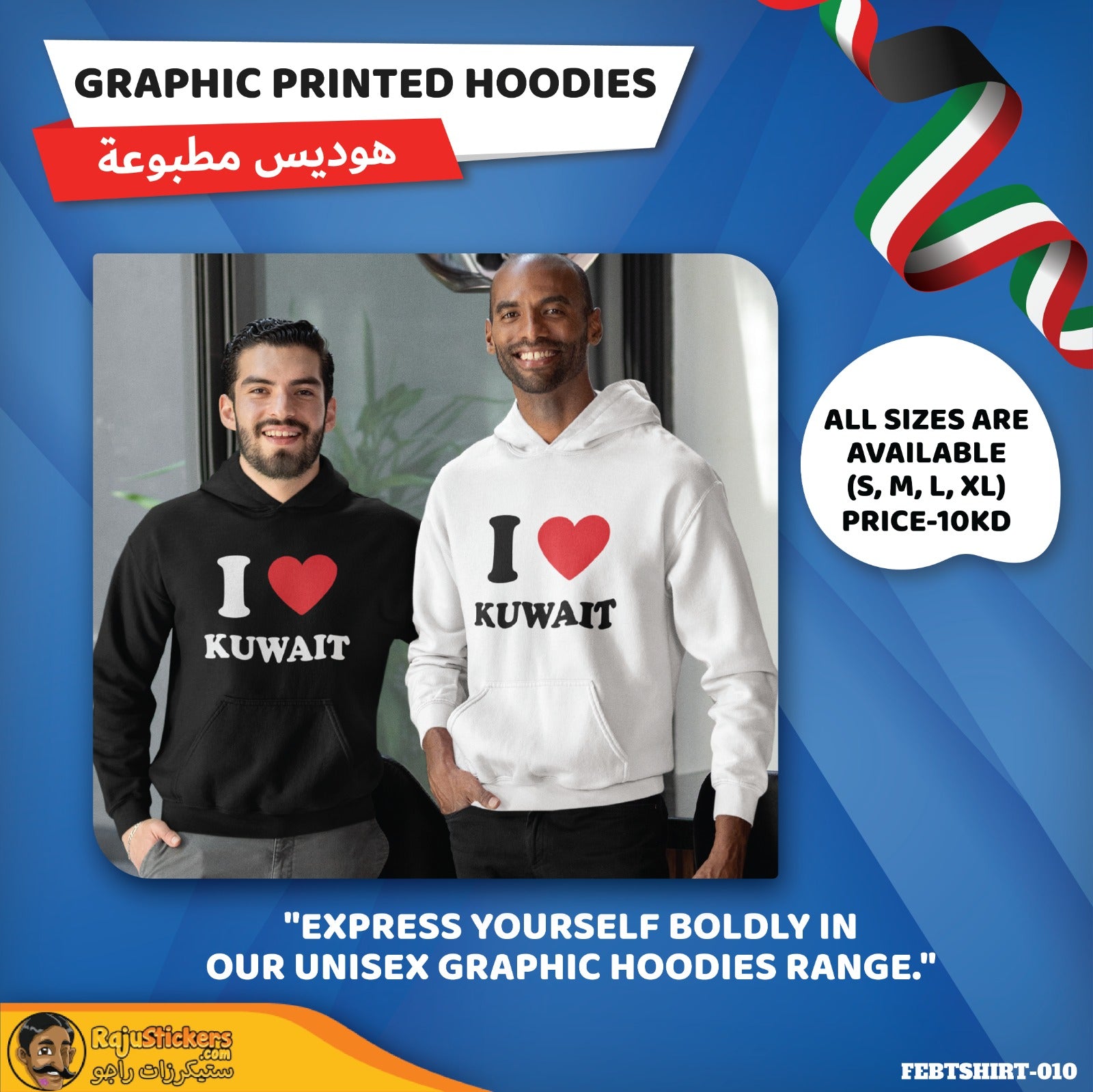 Kuwait National Day Printed Hoodie for Adults